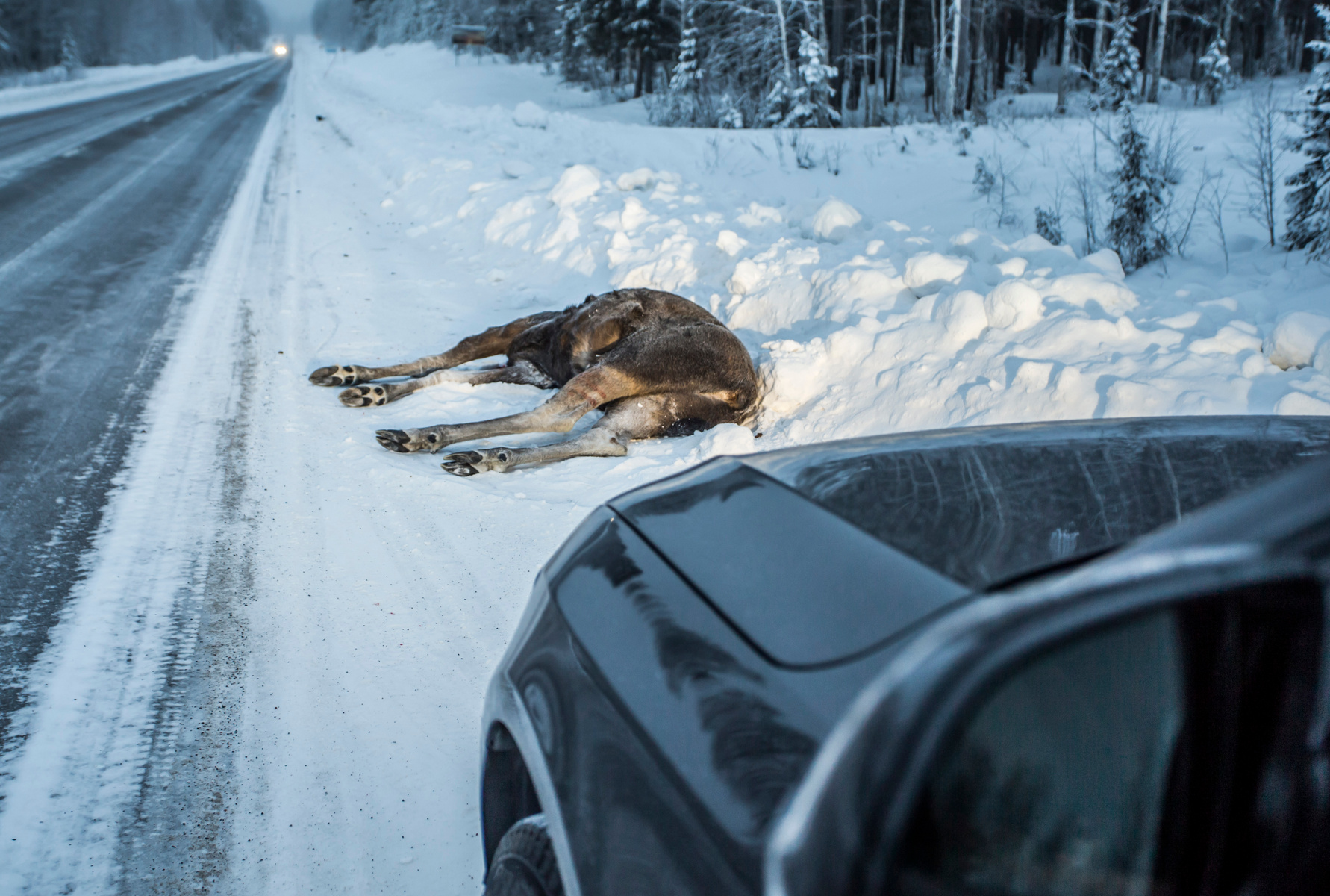 Trafikhinder på E45 efter älgkollision utanför Arvidsjaur